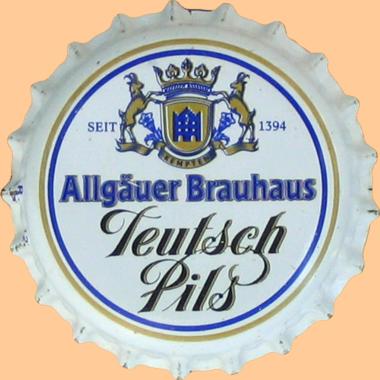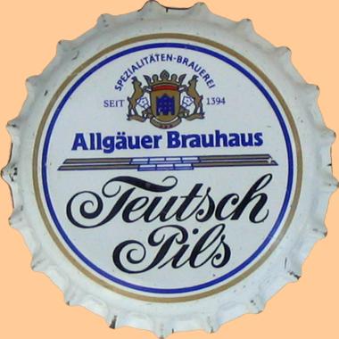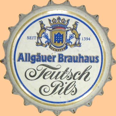 | Allgäuer Brauhaus AG, Kempten | Allgäuer Brauhaus Teutsch Pils Spezialitäten-Brauerei Seit 1394 | Wappen Böcke Krone Banner Haus | Pils | ![]() |