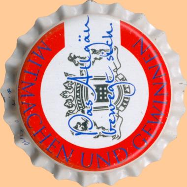 | Allgäuer Brauhaus AG, Kempten | Randschrift: Drehen Svitare Devisser Drehen Svitare | Logo Metzgerhandwerk Ochsenkopf Beile Krone | ![]() |
