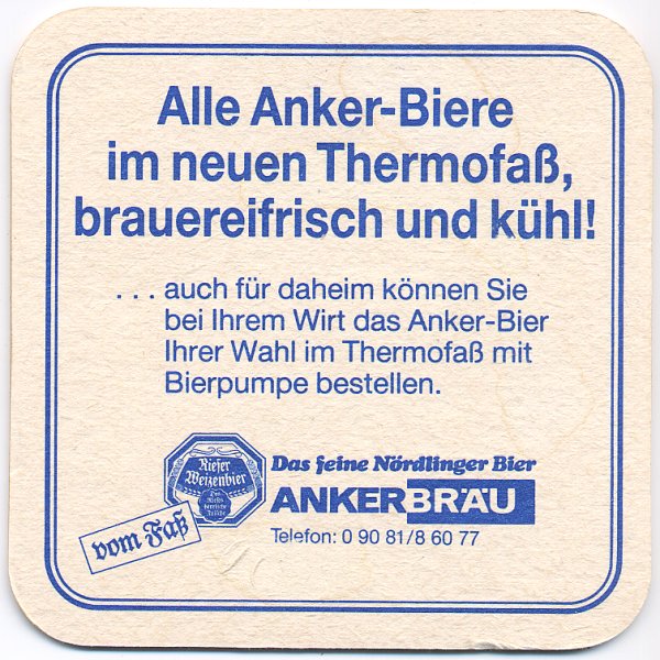 | Ankerbräu Nördlingen Marie Grandel GmbH & Co., Nördlingen | Ankerbräu Randschrift: Ankerbräu Nördlingen |