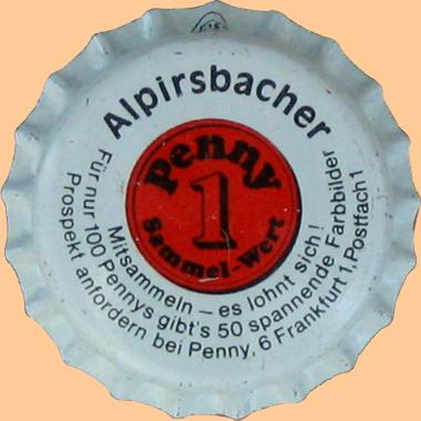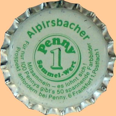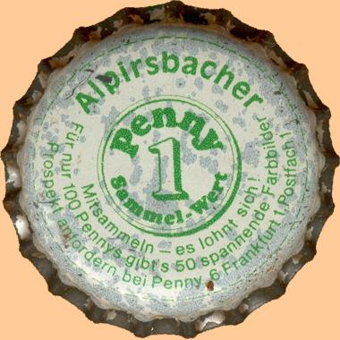 | Alpirsbacher Klosterbräu Glauner GmbH & Co., Alpirsbach | Alpirsbacher 1 Penny Sammel - Wert Mitsammeln - es lohnt sich! Für 100 Pennys gibt es 50 spannende Farbbilder Prospekt anfordern bei Penny, 6 Frankfurt 1, Postfach 1 | Logo Penny | Penny Sammelserie mit Ring |