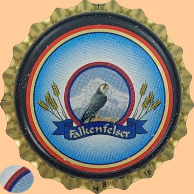 | Bayern Bräu, Bad Neustadt | Falkenfelser | Logo Falke Felsen Gerste Banner | goldener Rand | ![]() |