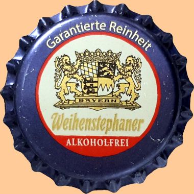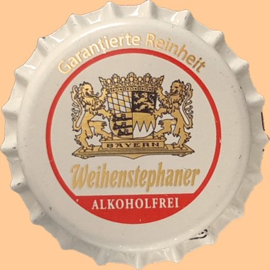 | Bayerische Staatsbrauerei Weihenstephan, Freising | Weihenstephaner alkoholfrei Garantierte Reinheit | Wappen Löwen Krone Hopfen | ![]() |