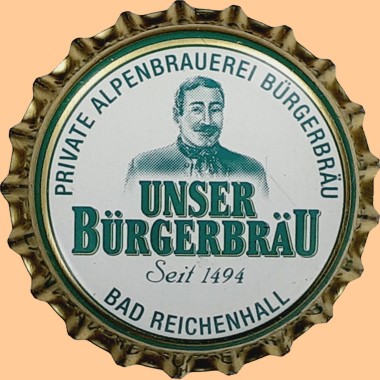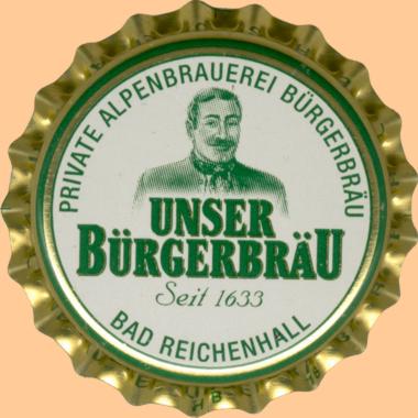 | Brauerei Bürgerbräu A. Röhm & Söhne KG, Bad Reichenhall | Unser Bürgerbräu Seit 1633 Randschrift: Bürgerbräu Bad Reichenhall |