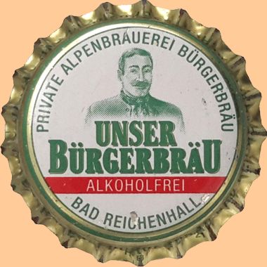 | Brauerei Bürgerbräu A. Röhm & Söhne KG, Bad Reichenhall | Unser Bürgerbräu Alkoholfrei Randschrift: Private Alpenbrauerei Bürgerbräu Bad Reichenhall Berchtesgadener Land |