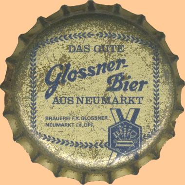 | Brauerei Franz Xaver Glossner, Neumarkt | Glossner Bier Seit 1574 Randschrift: Brauerei Franz Xaver Glossner, Neumarkt i. d. Opf. |