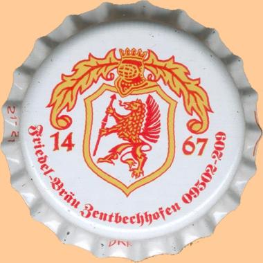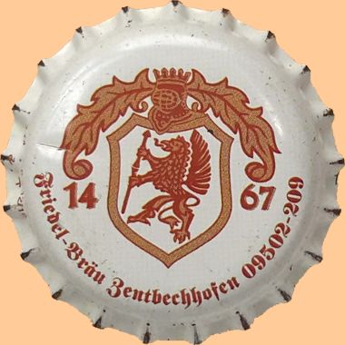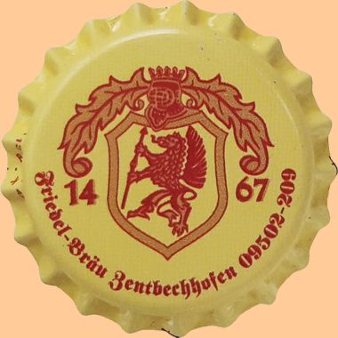 | Brauerei Friedel, Höchstadt | Zentbechhöfner Friedel Bräu 1467 | Wappen Fabeltier Helm Krone | ![]() |
