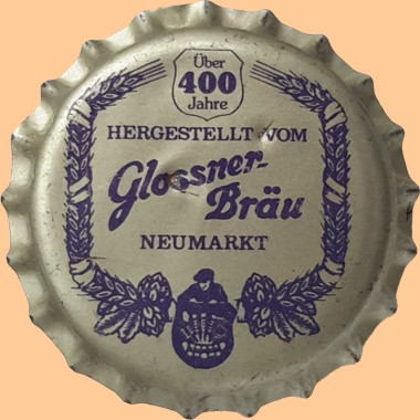 | Brauerei Franz Xaver Glossner, Neumarkt | Hergestellt vom Glossner- Bräu Neumarkt Über 400 Jahre | Wappenschild Brauerwerkzeug Mann Hopfen Gerste | ![]() |