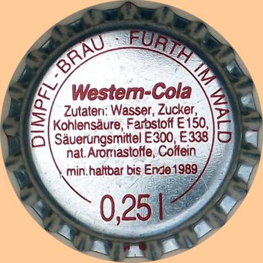 | Dimpflbräu Strauß KG, Furth im Wald | Dimpfl-Bräu Furth im Wald 0,25 l Western-Cola min. haltbar bis Ende 1989 |