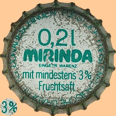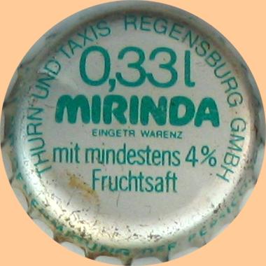 | Fürstlich Fürstenbergische Brauerei KG, Donaueschingen | Mirinda 0,2 l Fürstlich Fürstenbergische Brauerei KG Donaueschingen 3 % Randschrift: Hergestellt mit Genehmigung der Pepsico, Inc., Purchase N. Y. |